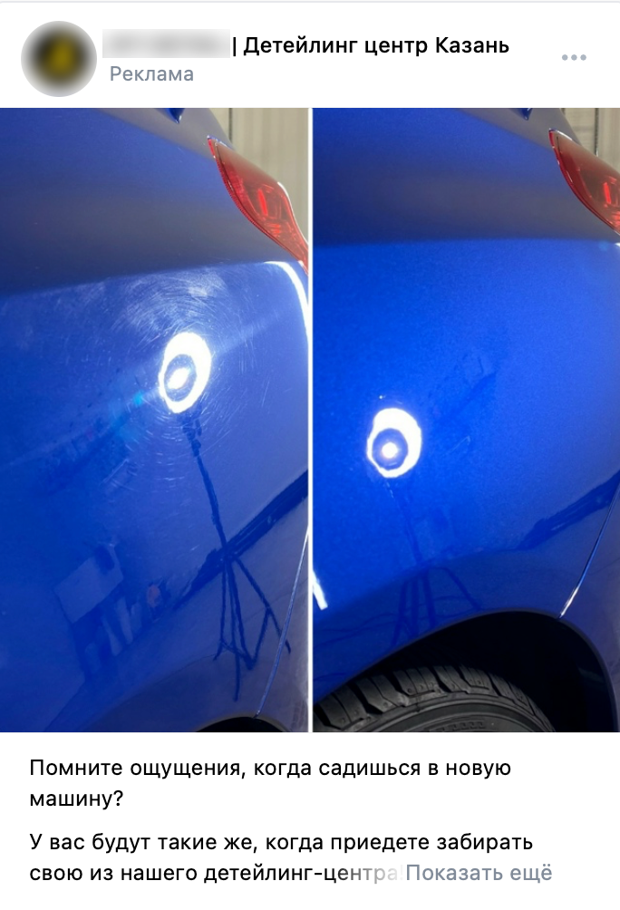 Лучше всего работают объявления в формате до/после, видео с процессом или результатом оказания услуги.